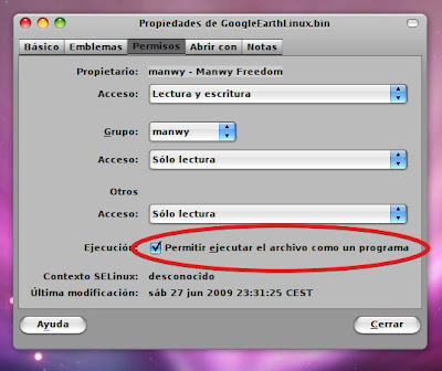 Vete a la pestaña Permisos y activa la casilla “Permitir ejecutar el archivo como un programa“.