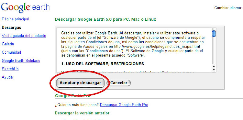 En primer lugar dirígete a la página de descarga de Google Earth.
