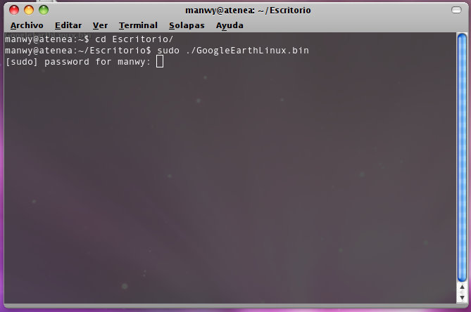 Utilizamos “sudo” para ejecutar la orden con permisos de superusuario ya que si no, no es posible instalar programas. Te pedirá una contraseña. Se trata de tu contraseña de usuario en Ubuntu. Tienes que teclearla (en la pantalla no se verá ningún signo de que estás escribiendo, pero no te preocupes, la contraseña quedará registrada, es una característica de seguridad de los sistemas UNIX). Pulsa “intro” y aparecerá la siguiente ventana.